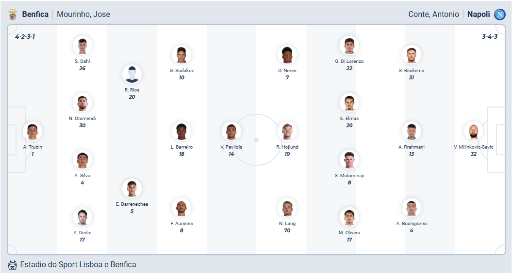 Lượt trận thứ 6 vòng League Phase Champions League, Benfica sẽ tiếp Napoli trên sân nhà với mục tiêu giành chiến thắng để cải thiện thứ hạng của mình. Đây không phải trận đấu dễ dàng và không dễ để đội chủ nhà đạt được mục đích.