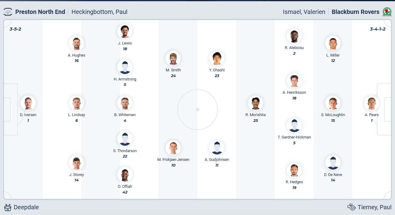 Blackburn đang thể hiện bộ mặt trái ngược so với mùa trước và so với Preston, họ đang đứng thứ 19 trên bảng xếp hạng dù mùa trước đứng thứ 7. Rõ ràng vị trí hiện tại là rất tệ và nếu không cẩn thận thì các cầu thủ của HLV Valérien Ismaël phải tính đến việc đua trụ hạng chứ không phải cạnh tranh cho vé thăng hạng. Sau khi để thua vòng trước, Blackburn Rover cần một chiến thắng ở vòng đấu này, tuy nhiên chuyến làm khách trên sân của Preston có phong độ tốt không hề dễ dàng và khả năng Blackburn sẽ không thể có kết quả tốt ra về.
